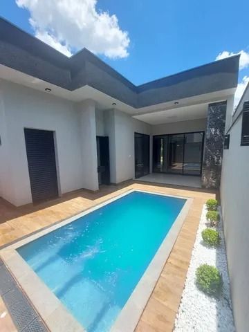 Casa Nova Térrea na Região Sul de Ribeirão Preto - SP, Com 3 suítes, sendo a Master com cuba dupla, Escritório, Lavabo, Àrea de serviços e Cozinha. Salas de estar e Jantar com pé direito duplo de 4.5 m. Garagem grande para até 3 veículos coberto e 5 descobertos. Área gourmet com churrasqueira em porcelanato separada da cozinha com banheiro externo. Ambientes da sala, cozinha e área gourmet integrados com portas de correr, facilitando a Convivência. A casa conta com sistema solar de aquecimento das torneiras. Piscina de alvenaria de azulejo com praia, hidro, iluminação e aquecimento. Infra estrutura pronta para instalação de energia Fotovoltaica. Infra estrutura pronta para instalação do ar condicionado em todos os cômodos da casa. Acabamento alto padrão, com granitos Branco Prime e Preto São Gabriel, com torneiras monocomando Docol e sanitários Roca. Caixas de água com capacidade de 2.250 litros+ boiler de 400 litro Terreno: 287 m2 com 12,5 de frente Área construída: 167 m2 Casa sem vizinho de frente em rua sem saída. Lote de ilha.