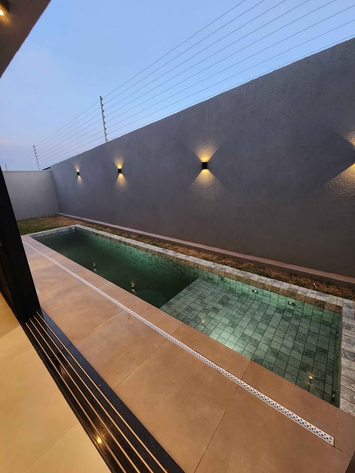 Casa Térrea Construção 208m² Terreno 350m² (12,5x28) 3 Suítes (Suíte Master com Closet) 1 Banheiro Interno 1 Banheiro Externo Sala de Estar, Jantar e Área Gourmet integrados Escritório (Reversível para uma 4ª Suíte) Piscina revestimentos ATLAS Lavanderia 4 vagas de garagem, sendo 2 cobertas Infra estrutura fotovoltaica Tomada para carro elétrico 220v Aquecimento de água solar Tubo a vácuo com armazenamento em Boiler Porcelanatos VILLAGRES primeira linha Louças e Metais DOCOL Misturadores Monocomando DOCOL Cuba cozinha MEKAL Tubulações 100% TIGRE Iluminação 100% LED Esquadrias de alumínio motorizadas Kit porta pronta Box e espelhos Churrasqueira braseiro Coifas de primeira linha sob medida estilo americana Infra estrutura de ar condicionados em cobre Telhado feito com estrutura metálica galvanizada e telhas sanduiche Moveis planejados.